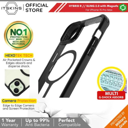 ITSKINS CASE FOR IPHONE 15 PRO MAX – MAGSAFE – HYBRID SLING – BLACK/TRANSPARENT