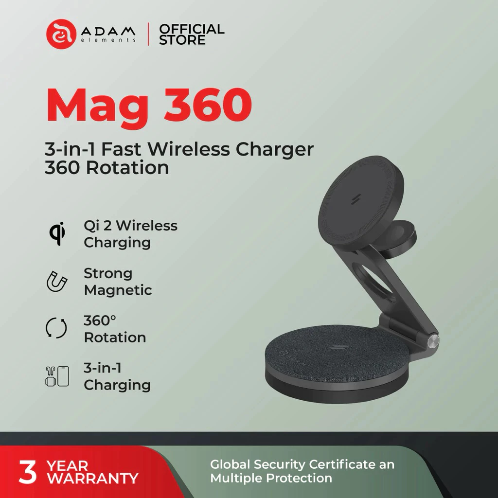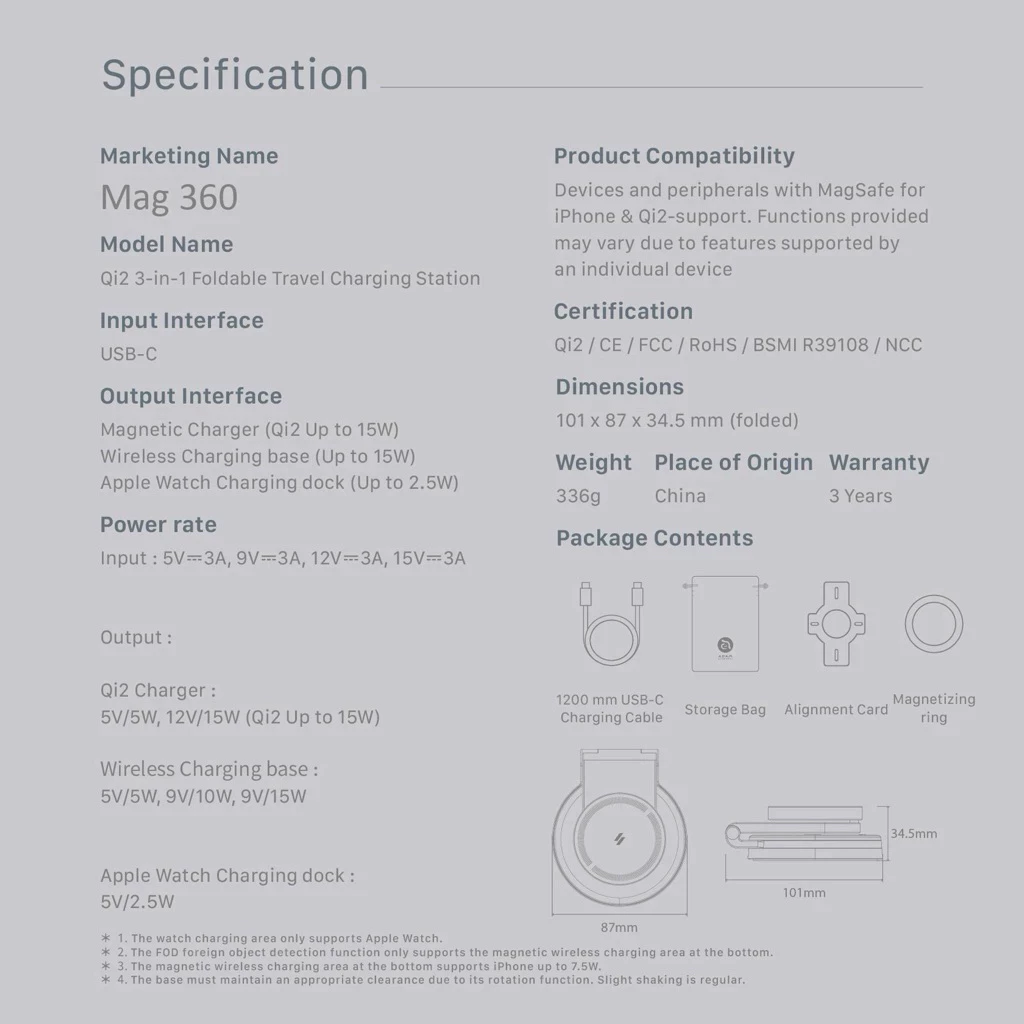– Kompatible iPhone, AirPods, Apple Watch dan juga support AirPods dengan MagSafe Case yang magnetic. Mag 360 ini menawarkan 3 charging mode