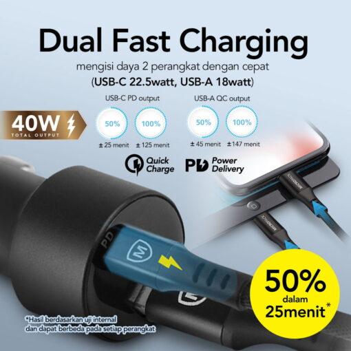 Tersedia 2 colokan dengan protokol pengisian daya cepat yaitu USB-C Power Delivery & Quick Charge 3.0