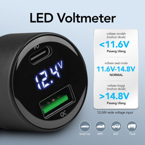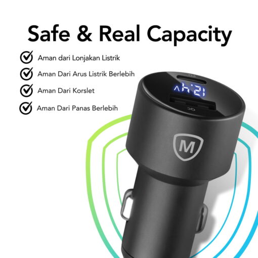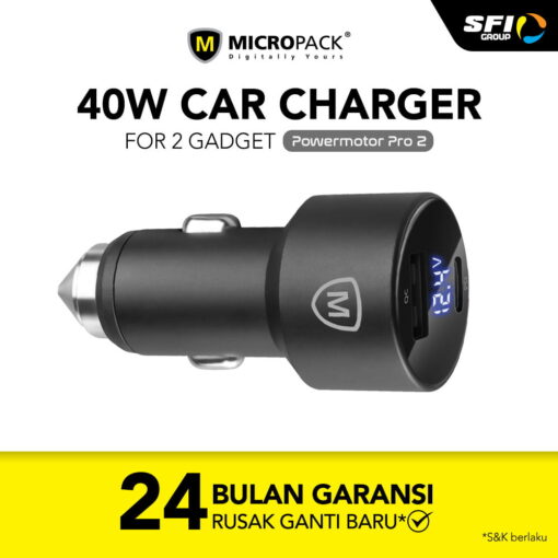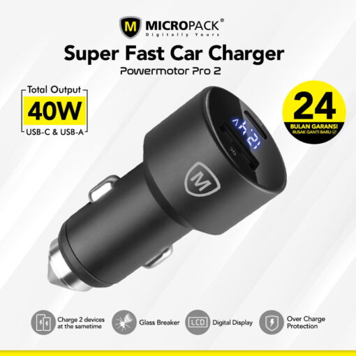 Micropack Car Charger Dual Port 22.5W Fast Charging QC PD With LCD Display Powermotor 2 (MCC-240PD)