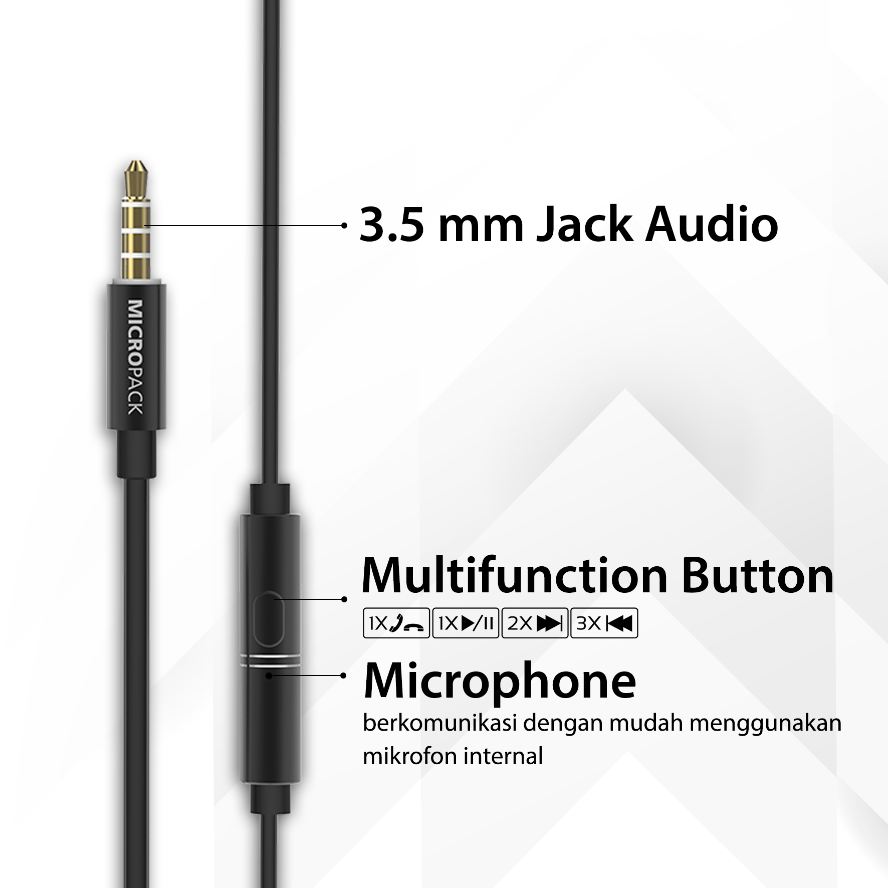 Semua headset/earphone/headphone dari Micropack sudah pasti:
