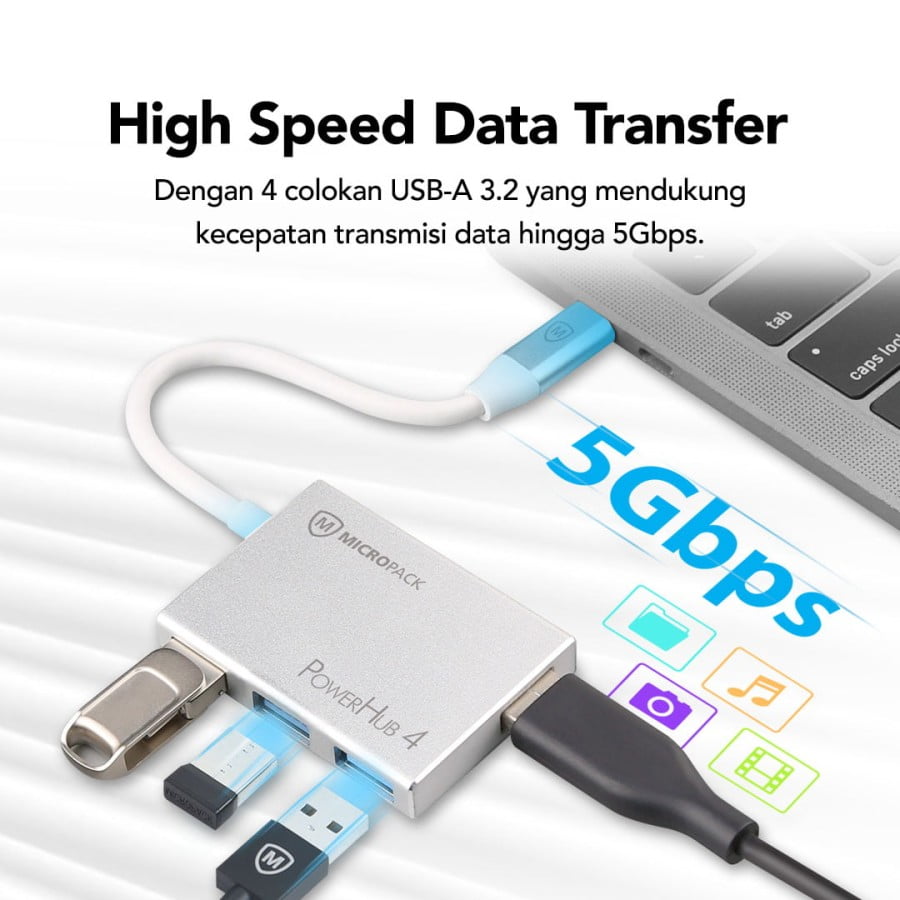 Dengan colokan 4 USB-A, transmisi ke berbagai perangkat secara bersamaan.