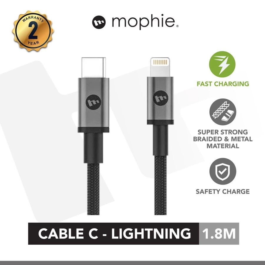 MOPHIE CABLE C TO LIGHTNING 1.8M BLACK – KABEL CHARGER IPHONE