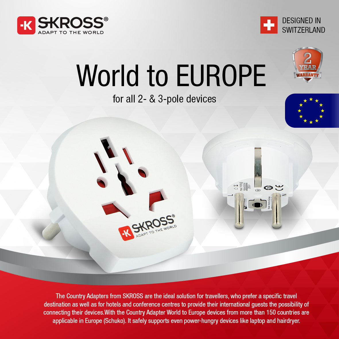 SKROSS ADAPTER WORLD TO EUROPE (BLISTER) – WHITE
